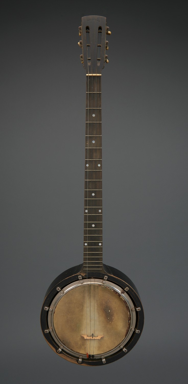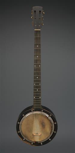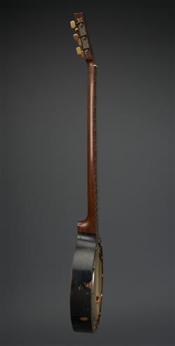 Impressed factory mark to headstock, mother-of-pearl inlay to finger board.