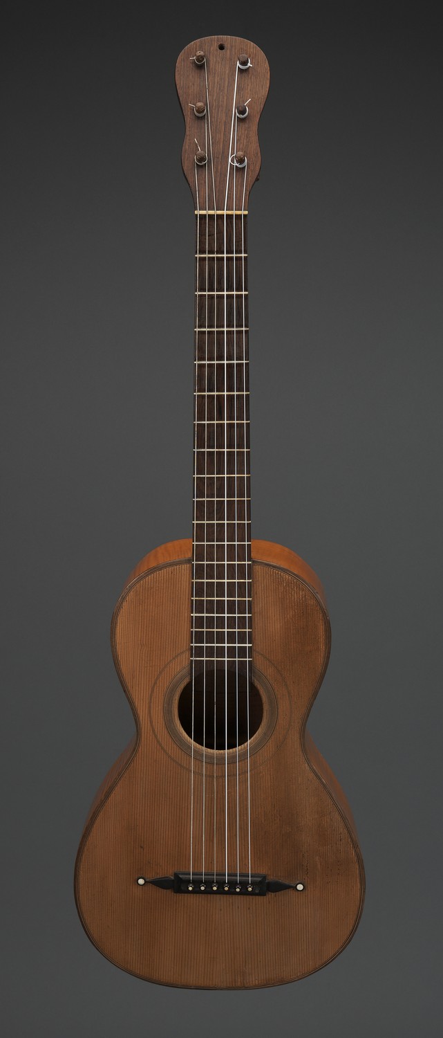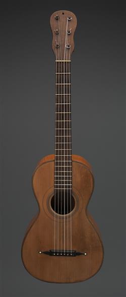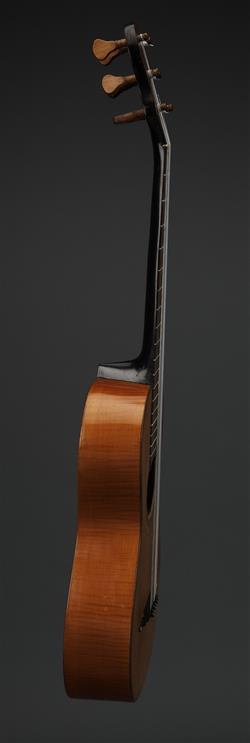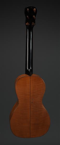 Maple body, with fine string inlay to edges and around sound hole, paper label to interior. Housed in case. Brazilian rosewood fingerboard. Ivory frets, nut and insets to bridge pins.