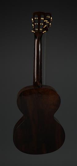 8 string, with fine string inlay to edges and around sound hole. Paper label. Brazilian rosewood veneer to back and sides