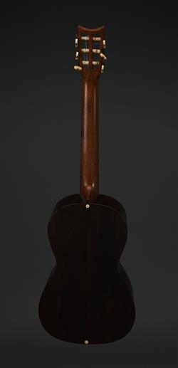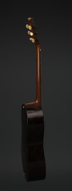 Fine string inlay to edges and around sound hole, paper label to interior, with 'Baker' tuning keys. Contains ivory and Brazilian rosewood. Eight fan bars in total.