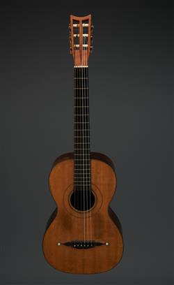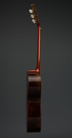 Brazilian rosewood back and sides, with ivory fittings in headstock. Fine string inlay to edges and around sound hole, paper label to interior along with two restorers labels 'Repaired by / IAN WATCHORN / in Melbourne, 2006' & 'L. RAMUS / Musical Instrument Maker / Repairs/ 14/11/44' . With 'Baker' tuning keys. Housed in Vittorini case.