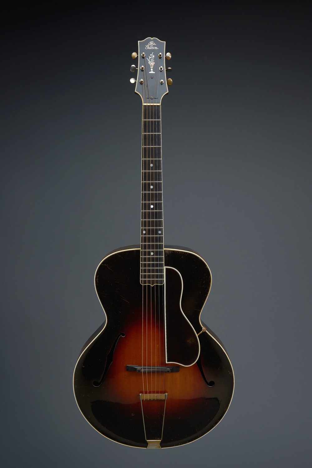 'The Gibson' logo inlaid in mother-of-pearl to headstock, 'PATENTED JULY 19.1910' engraved to tailpiece, and paper label to interior. Contains Brazilian rosewood.