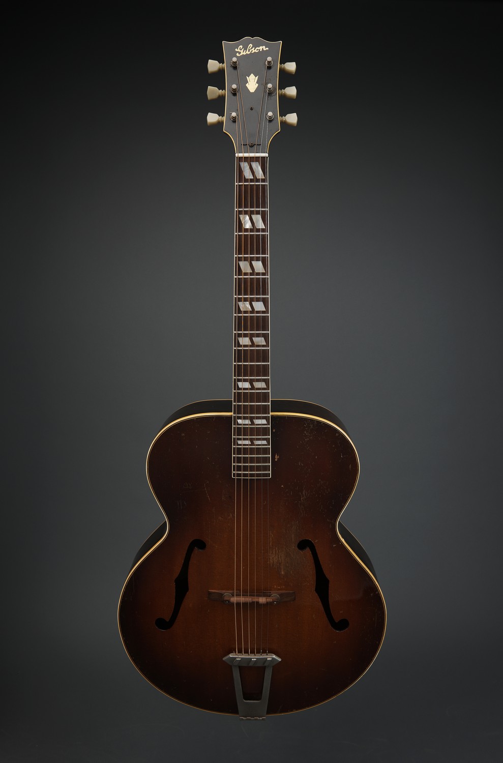 The Gibson logo inlaid with mother-of-pearl to the headstock and to the finger board, paper label to interior. Brazilian rosewood fingerboard. Housed in case.