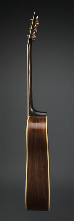 East Indian Rosewood back and sides. With decorative abalone shell inlay overall, particularly to fingerboard and headstock which is monogrammed 'M', the 'S.L. Mossman' decal verso to headstock, paper label to interior. Housed in hard case. Stamped 'S.L.MOSSMAN/ FINE GUITARS' to interior.