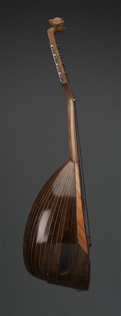 The headstock emanating a classical style female head. Contains Brazilian rosewood.
