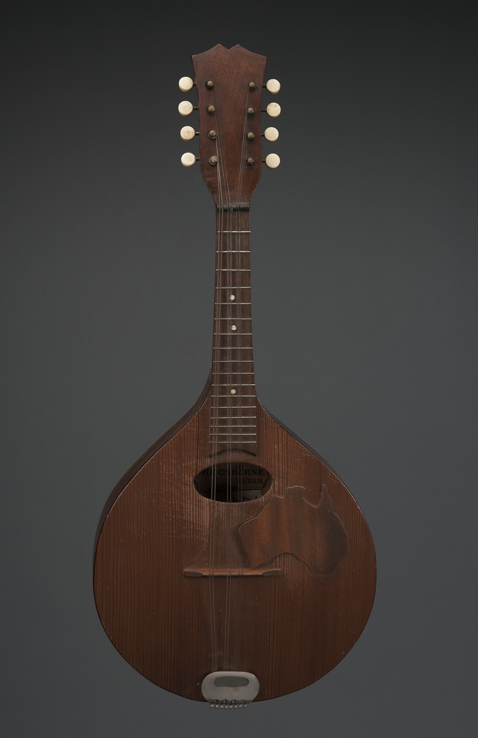 Applied with an Australian shaped pick guard. Paper label to interior. Contains Rosewood.