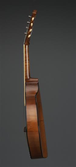 Etched 'Made by the Vega Company / 155 Columbus Ave / Boston' to verso of headstock. Decorative abalone and mother-of-pearl inlaid around sound hole, fingerboard and pick guard. With ivory trim and tuning pegs. Housed in hard case.