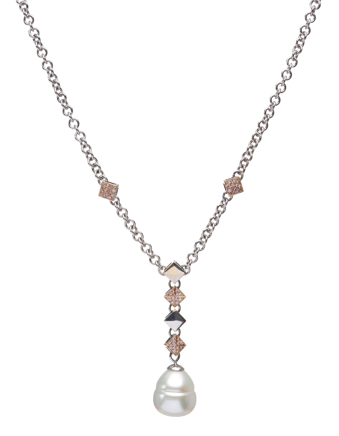 The necklace presents in very good condition. The pearl is in excellent condition and secure. All diamonds are in very good condition and secure. Minor evidence of wear to gold surfaces. Total weight approximately 24.9 grams.