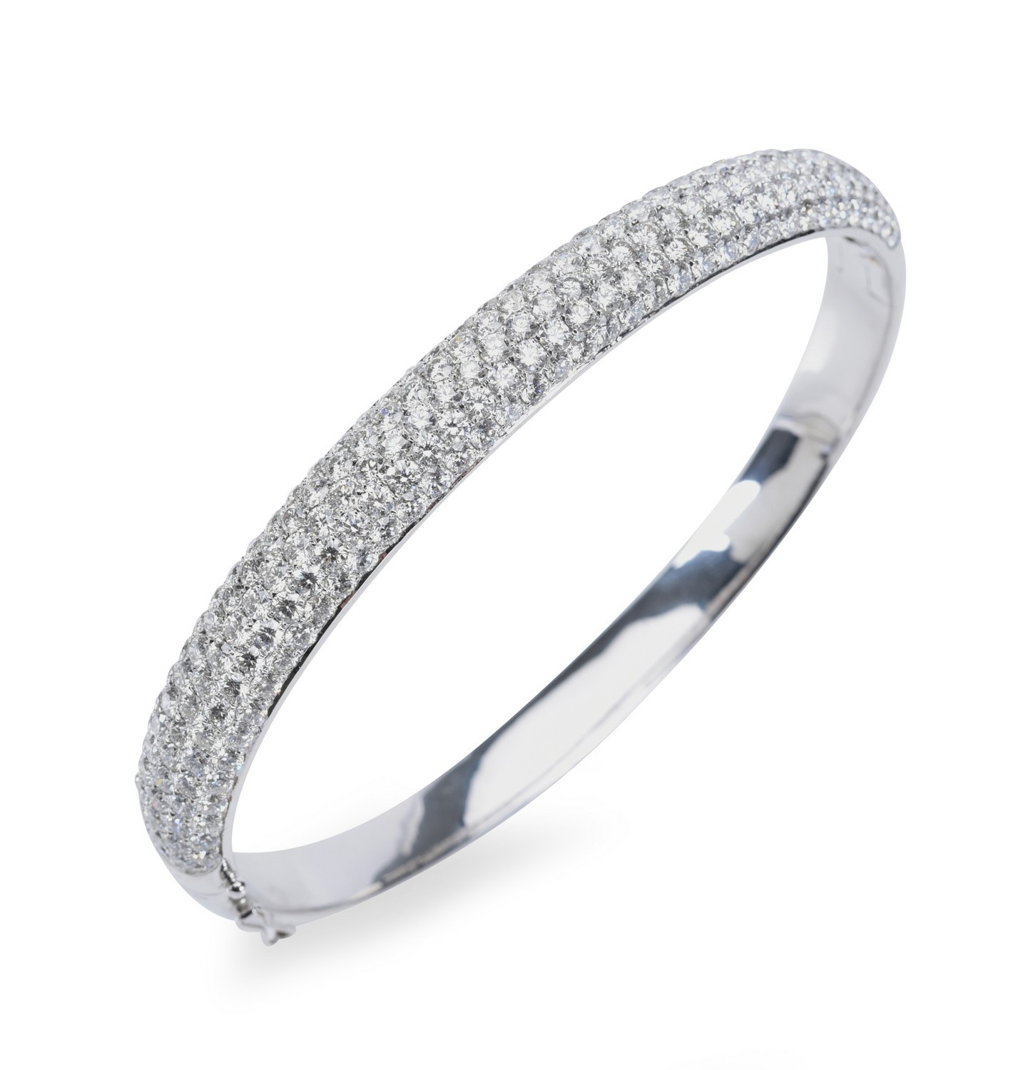 The hinged bangle set with two hundred and four round brilliant cut diamonds totalling 8.16cts, signed, in 18ct white gold.