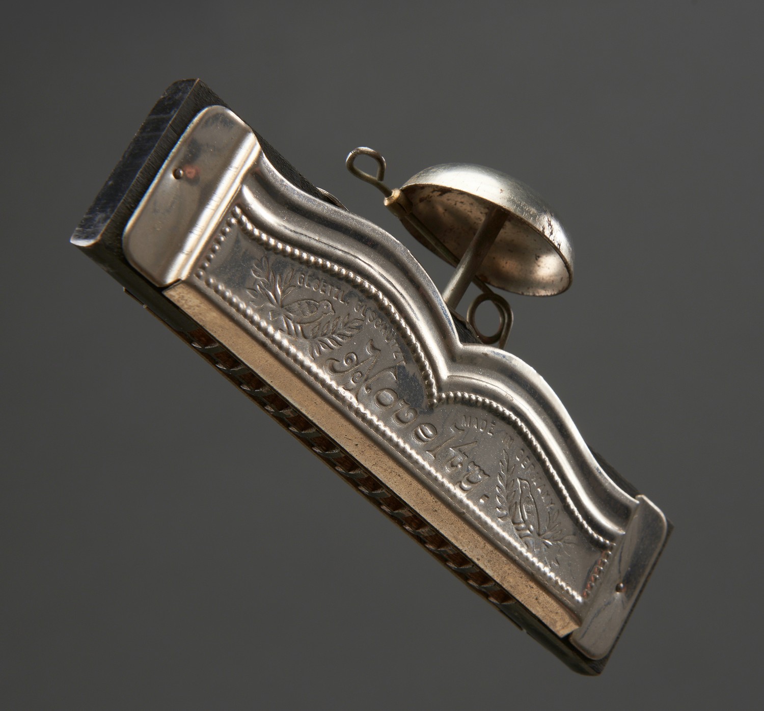 Housed in original box. The mouthorgan impressed with decoration of two birds.