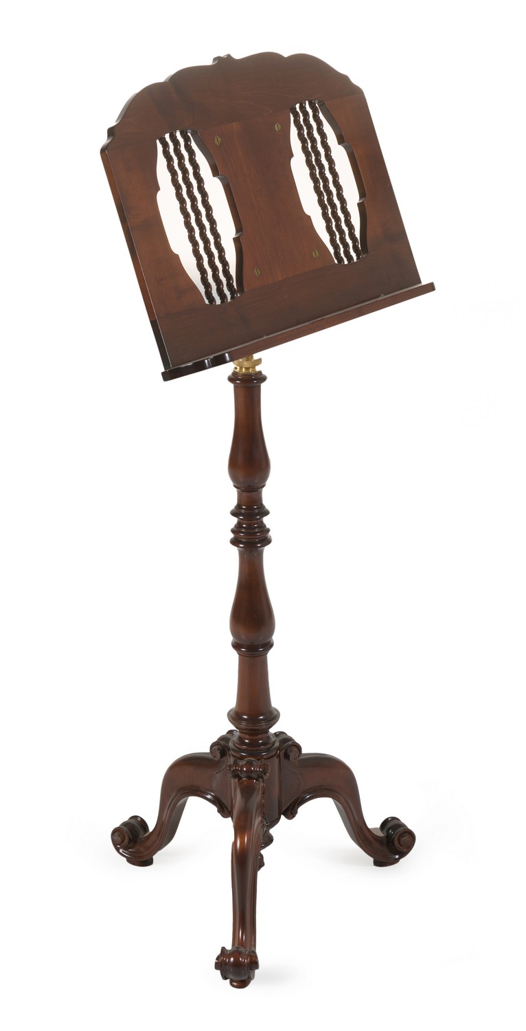 The shaped panel incorporating twist spindles, supported on a turned column on a scrolled tripod base