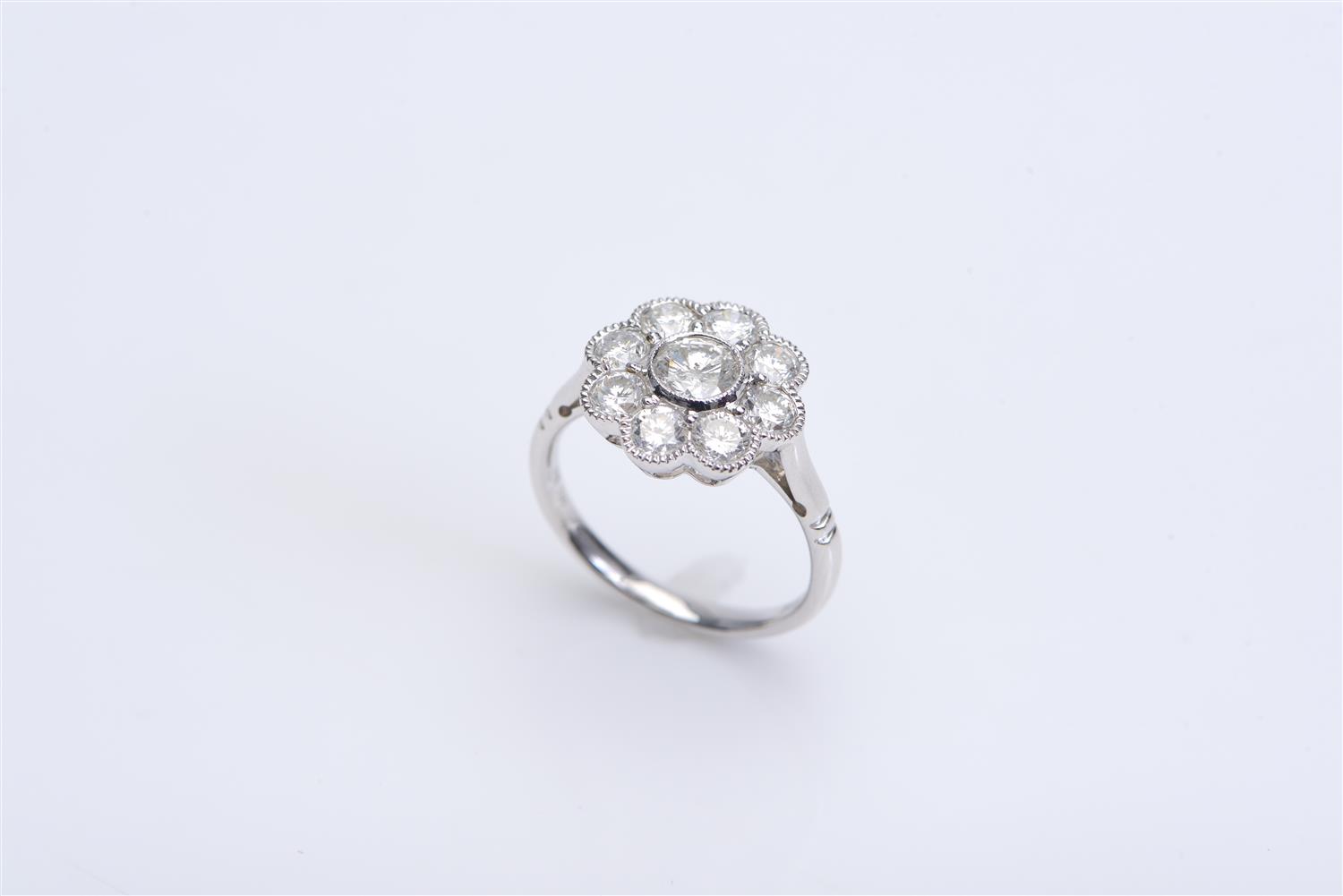 The ring presents in excellent condition. The diamonds are all secure in their settings and are estimated H-J in colour and SI2-P1 in clarity.