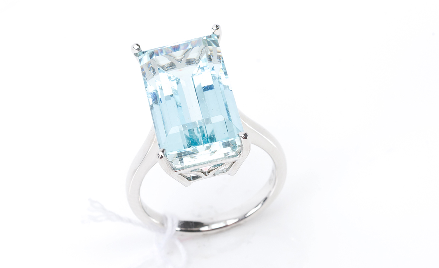AN AQUAMARINE COCKTAIL RING WEIGHING 12.11CTS, IN 18CT WHITE GOLD, SIZE M, 7GMS