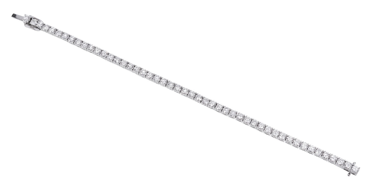 Comprising forty nine round brilliant cut diamonds totalling 7.90cts, in 18ct white gold, total length 180mm.