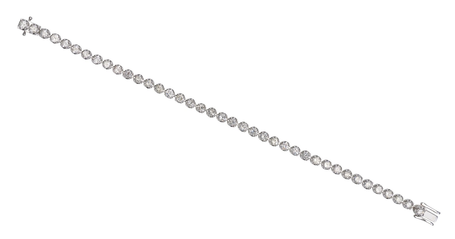 Comprising thirty nine round brilliant cut diamonds totalling 4.51cts, in 18ct white gold, total length 180mm.