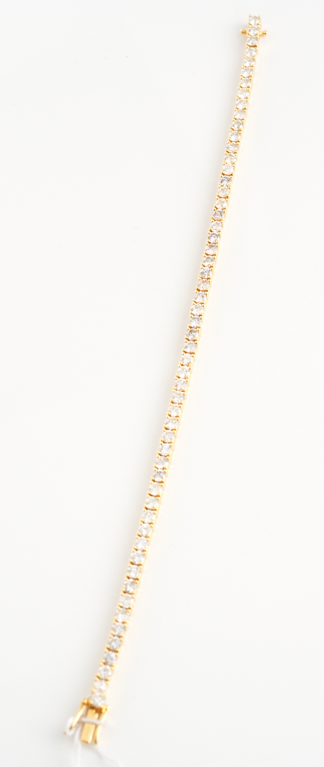 A DIAMOND LINE BRACELET IN 18CT WHITE GOLD, THE DIAMONDS TOTALLING 7.05CTS, TOTAL LENGTH 18.5CM, 9.2GMS