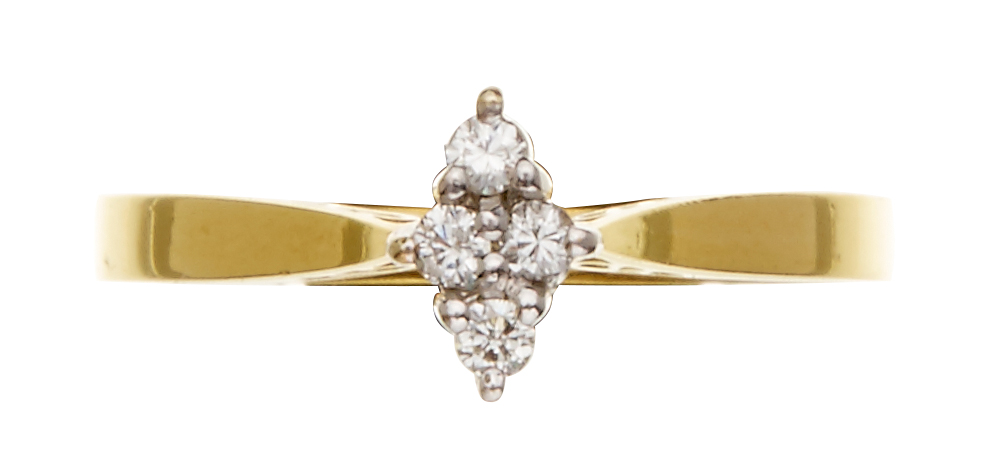 Set with four brilliant cut diamonds, estimated total weight 0.11cts, in 18ct gold, ring size L.