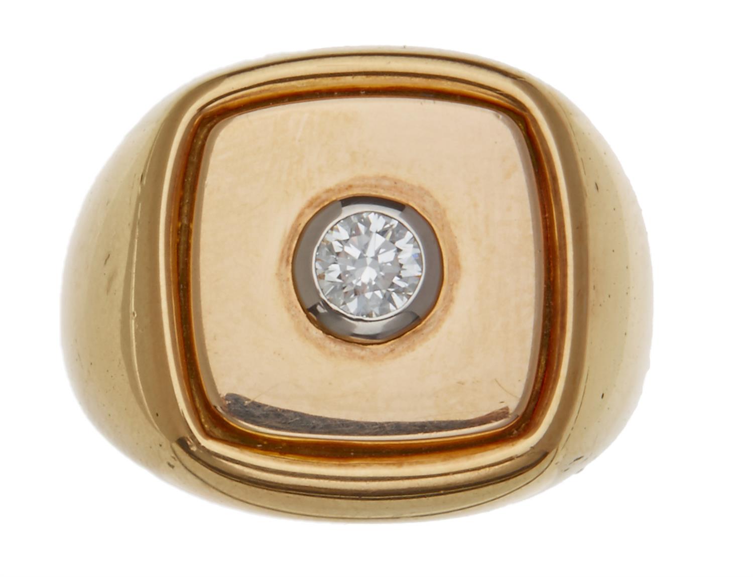 The bezel set brilliant cut diamond, estimated weight 0.15cts, colour H, clarity VS, in 18ct gold, ring size V.