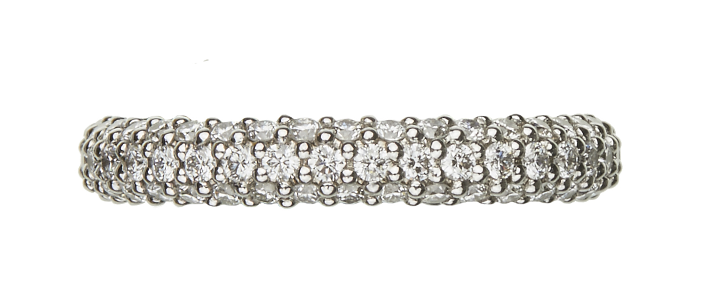 In 'as new' condition. Half eternity, handmade. No colour ot clarity supplied as stones are too hard to grade in setting. Ring approximate weight 4.9gms