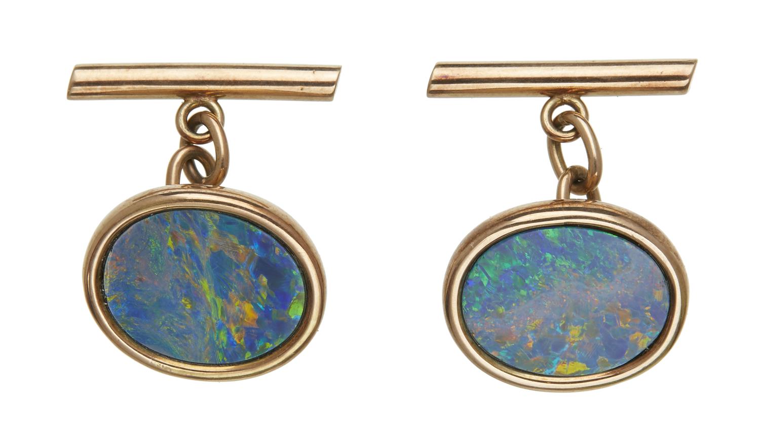 A PAIR OF OPAL CUFFLINKS