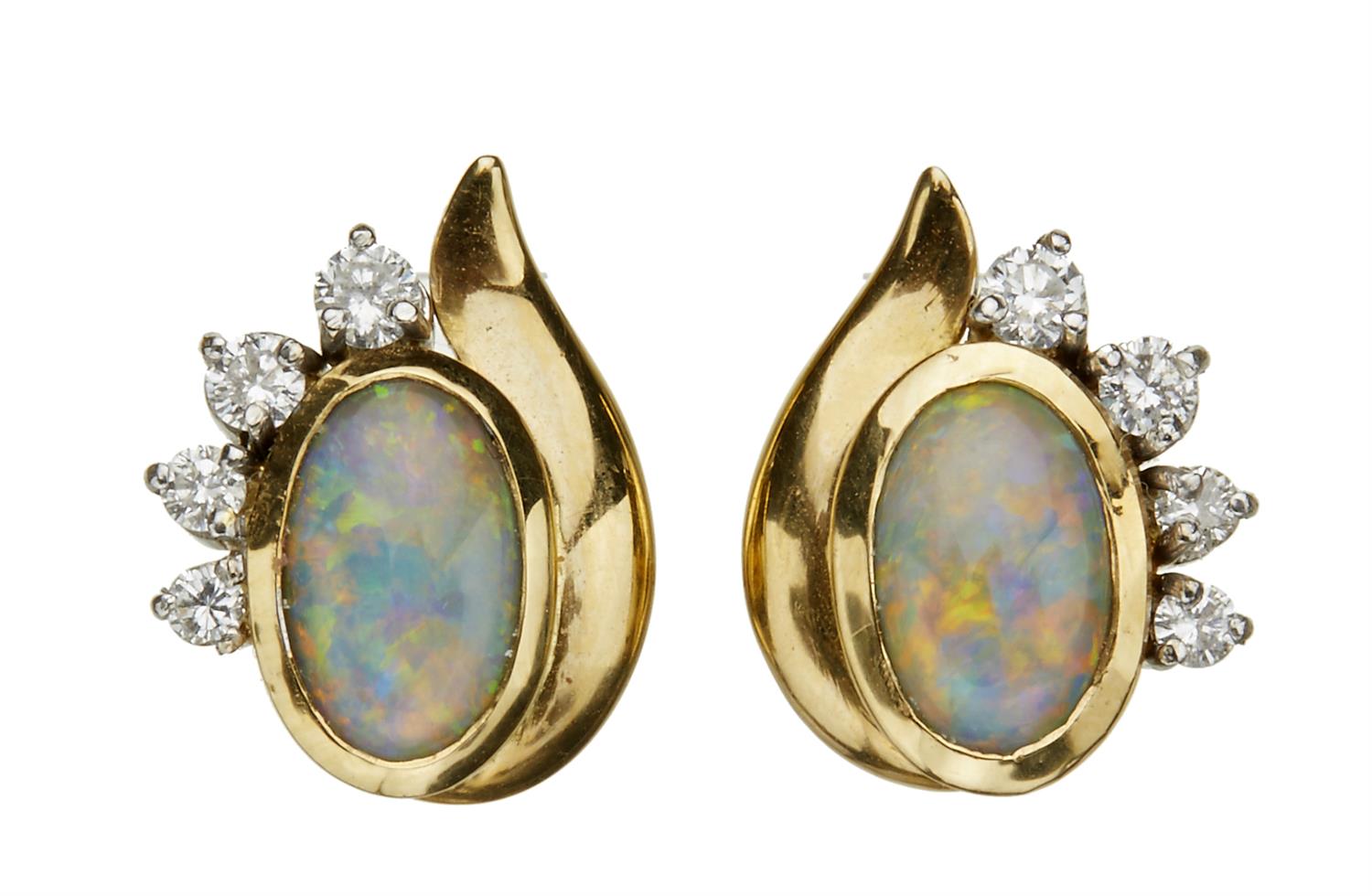 A PAIR OF OPAL AND DIAMOND STUD EARRINGS