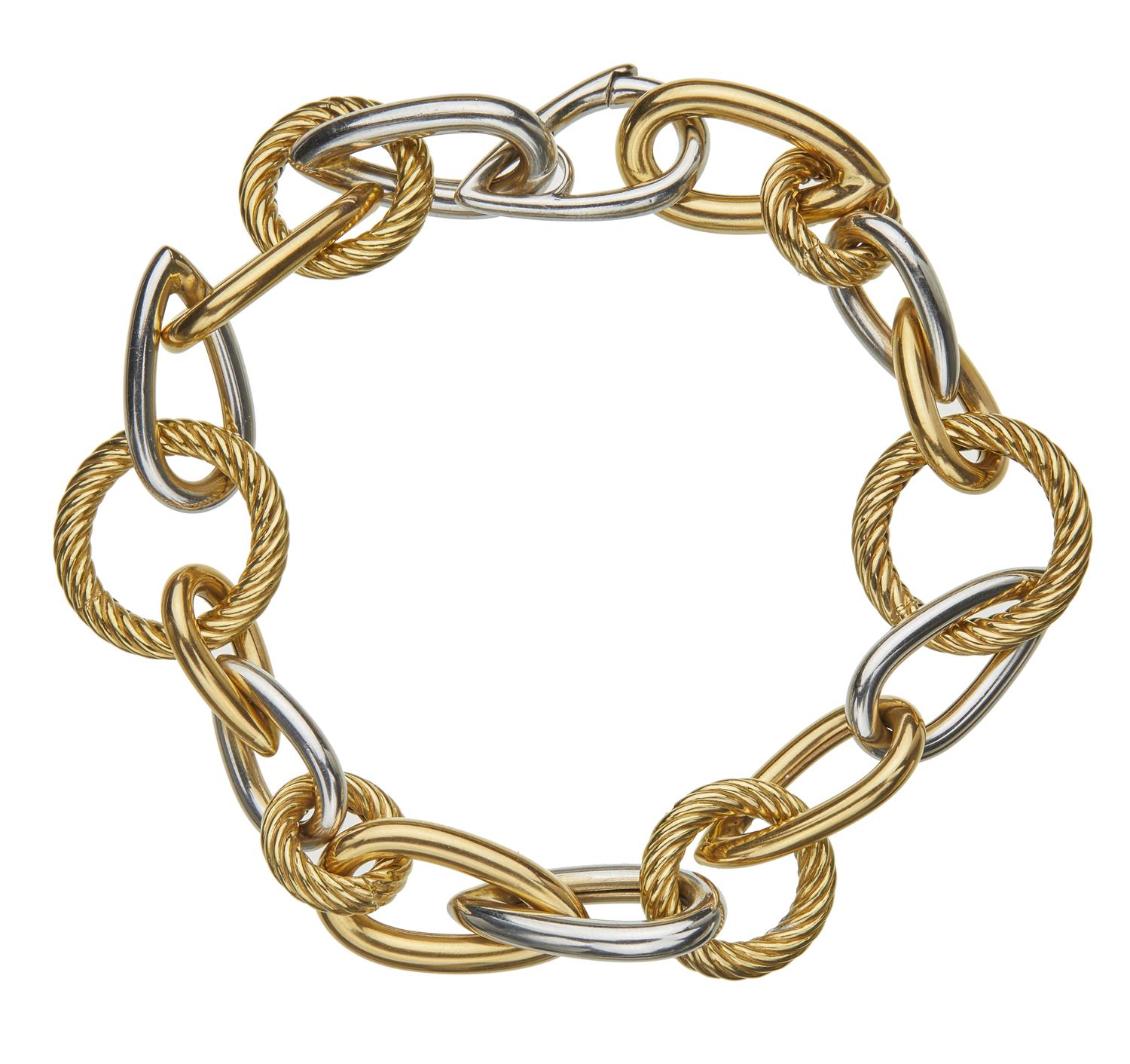 The fancy link bracelet with concealed clasp in two tone 18ct gold, total length 210mm.