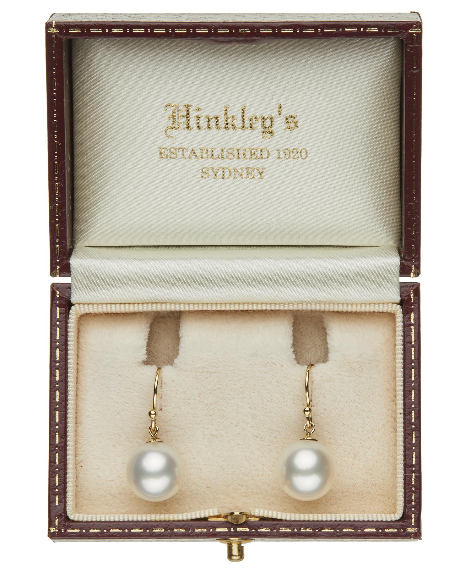 The round pearls of silver and white hues, measuring 12.0mm, to shepherd hook fittings, in 18ct gold.