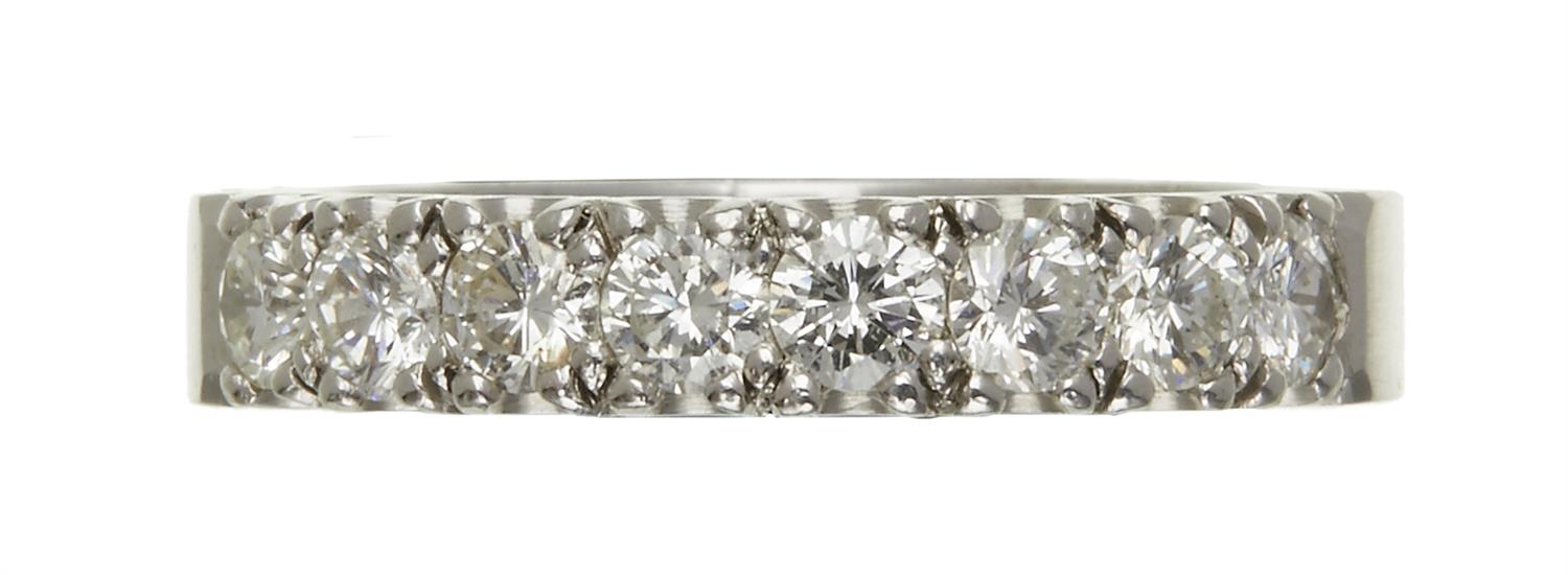 The half circle design set with eight brilliant cut diamonds, estimated total diamond weight 1.01cts, colour J, clarity SI, in 18ct white gold, ring size O.