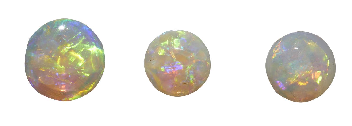 A COLLECTION OF THREE LOOSE WHITE LIGHTNING RIDGE OPALS