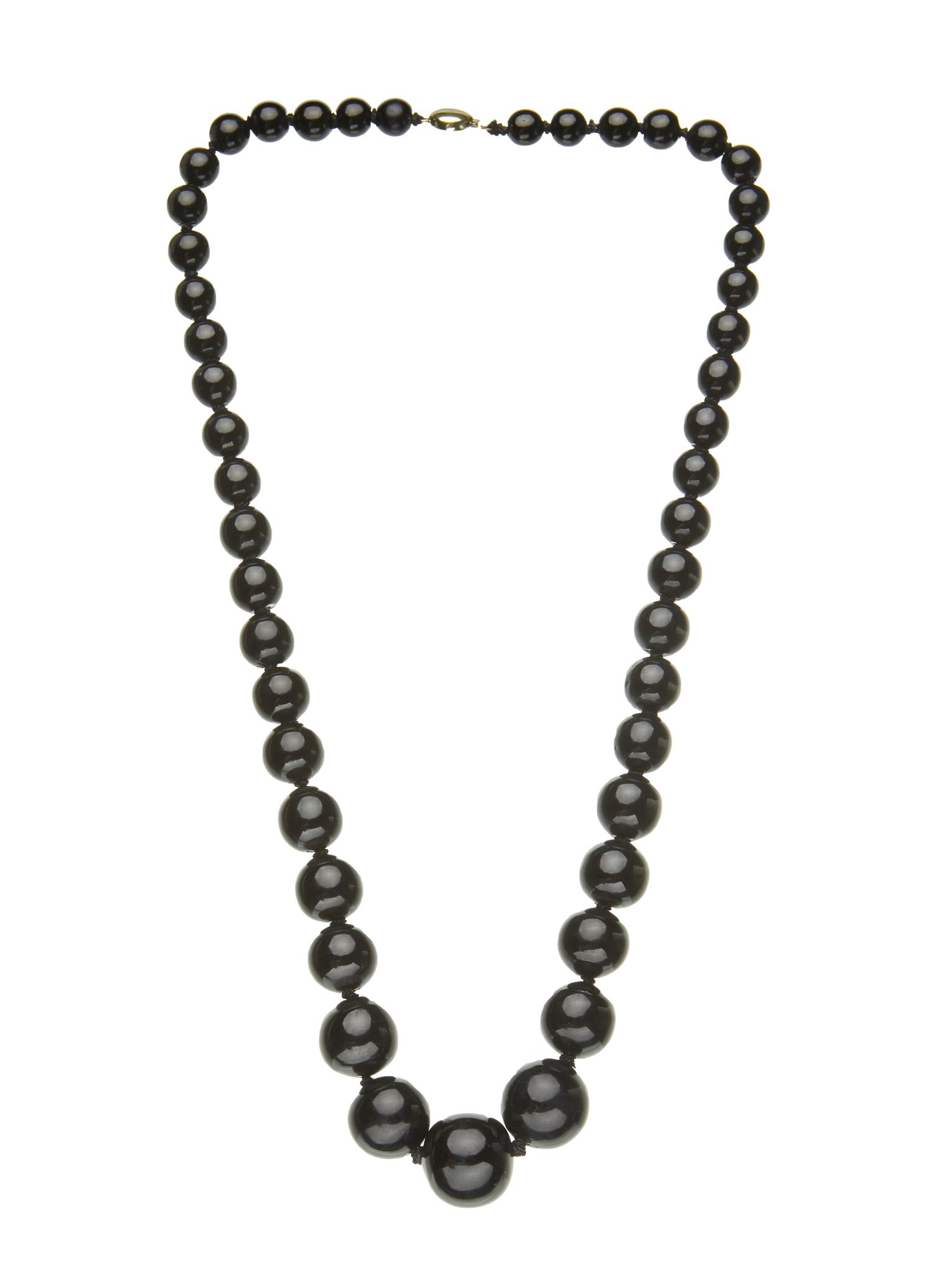 The graduated circular beads, measuring 9.0mm to 9.2mm, to a 14ct gold clasp, total length 640mm.
