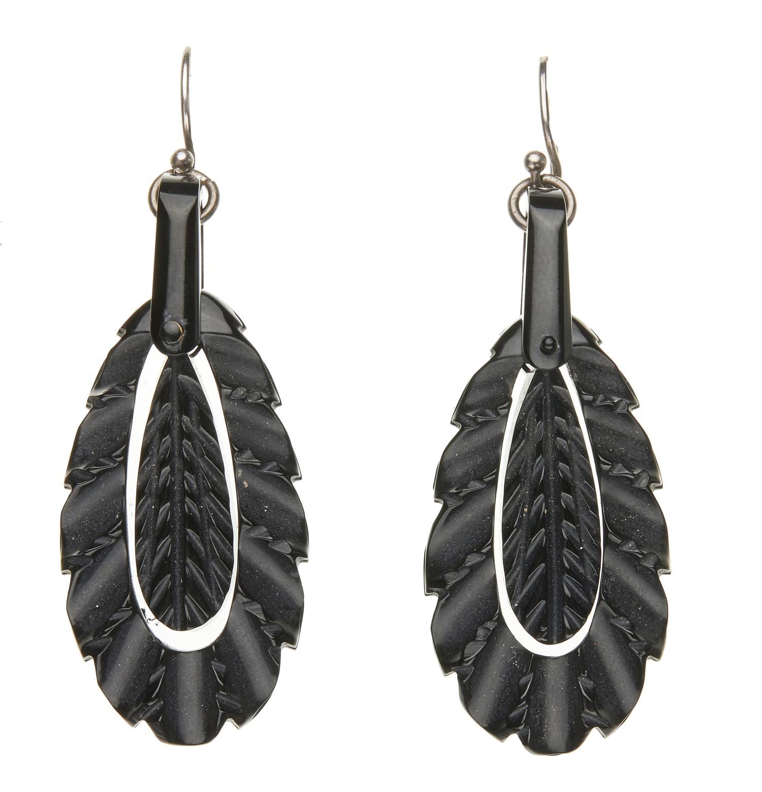 A PAIR OF WHITBY JET EARRINGS