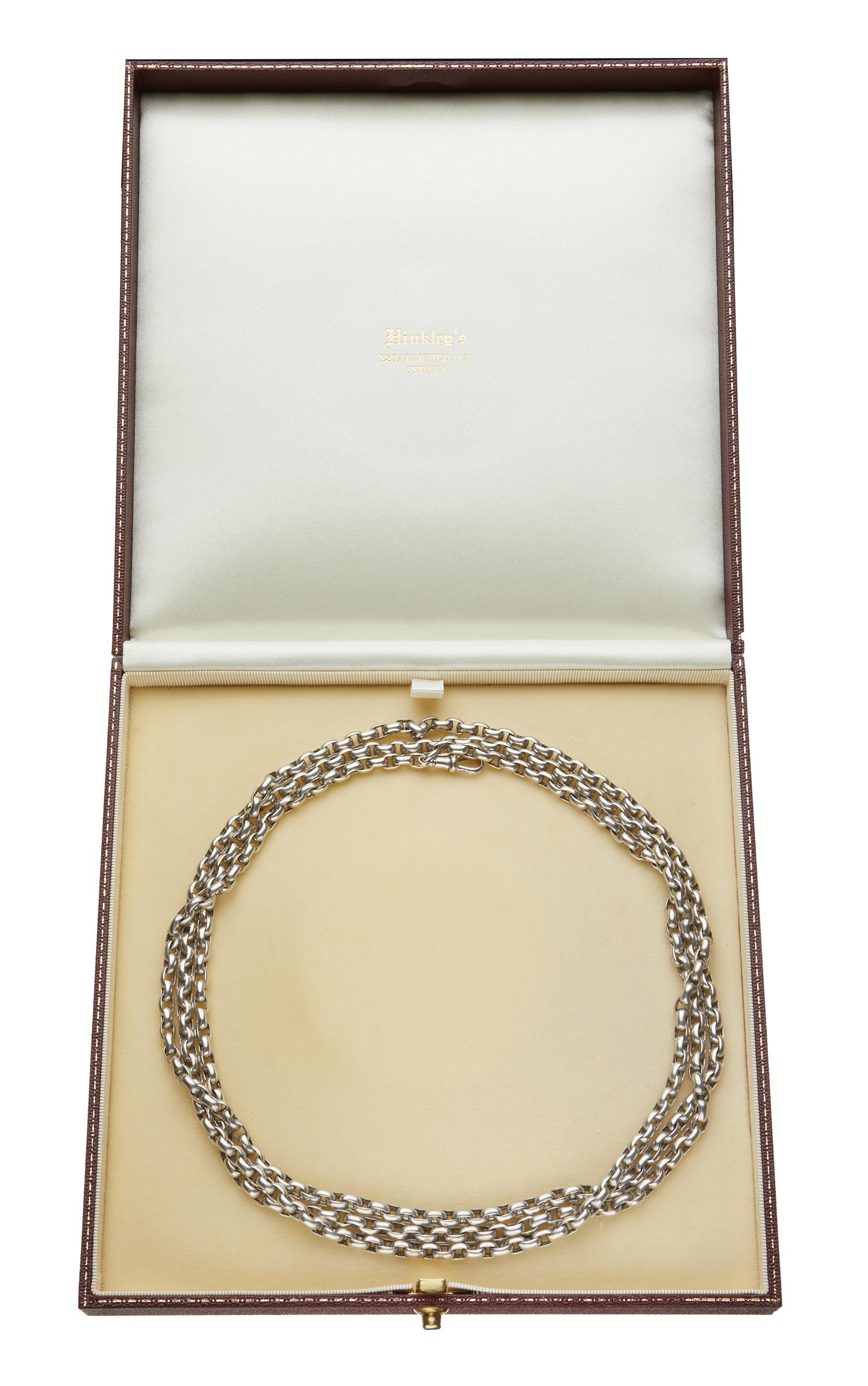 Comprising oval polished links to a parrot clasp, in sterling silver, total length 1480mm.