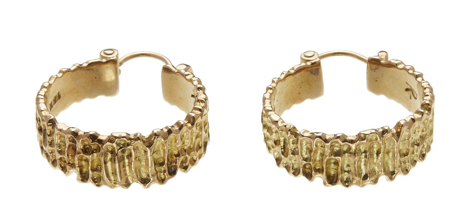 The textured hoops, in 14ct yellow gold.