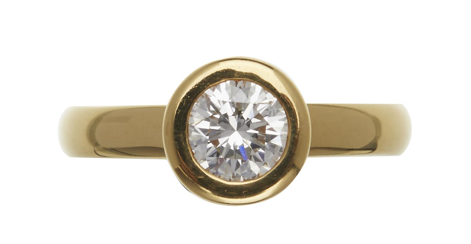 Centrally set with a round brilliant cut diamond weighing 0.50cts, colour H, clarity VVS2, in 18ct gold, ring size M.