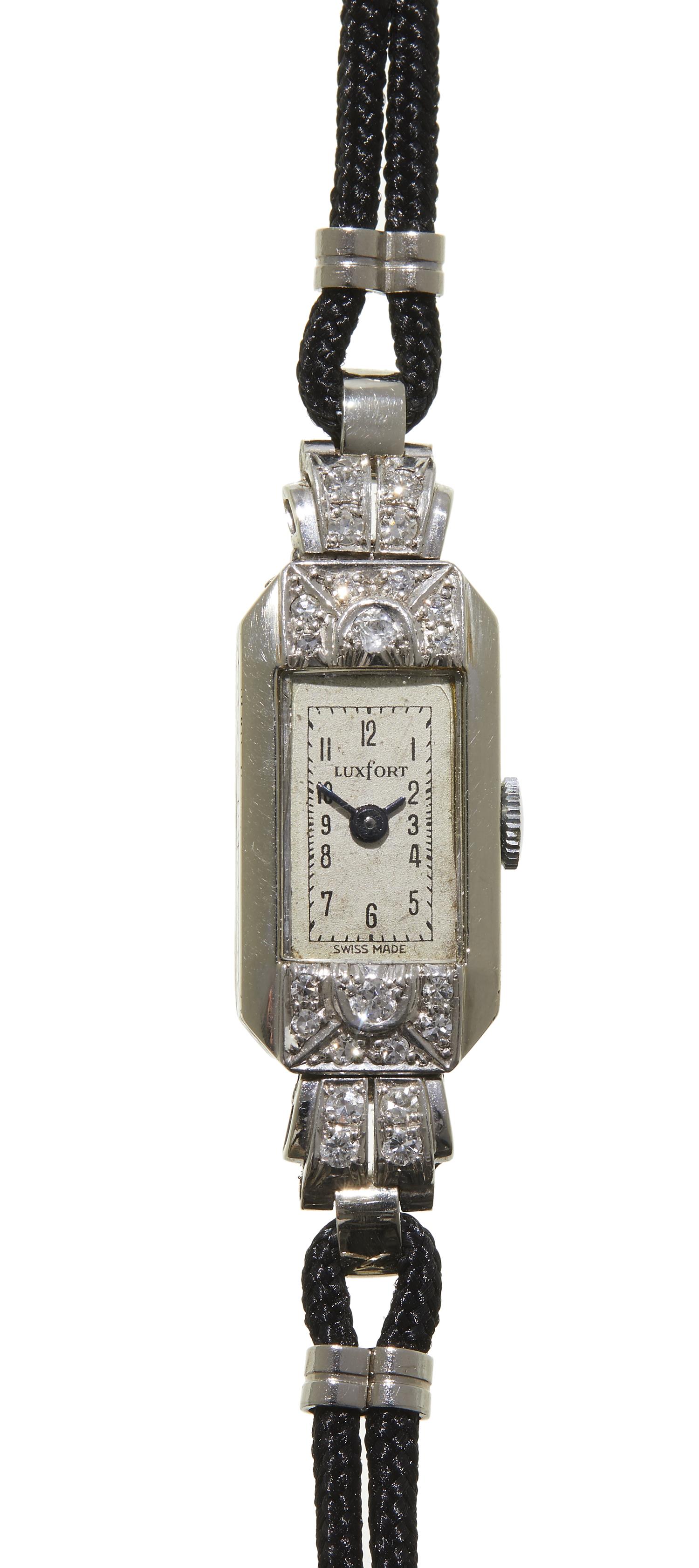 A LADIES VINTAGE LUXFORT DIAMOND WATCH