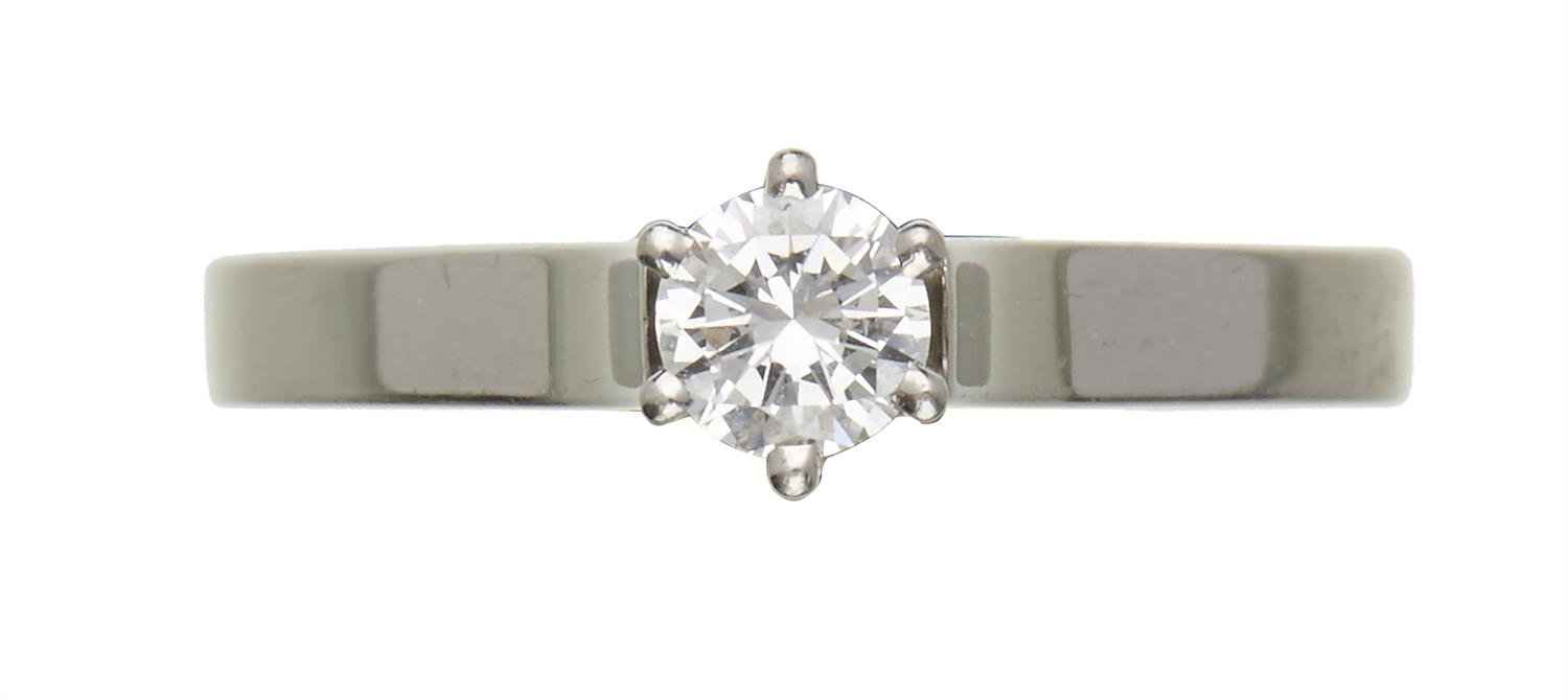 Centrally set with a brilliant cut diamond weighing 0.25cts, in 18ct white gold, ring size L.