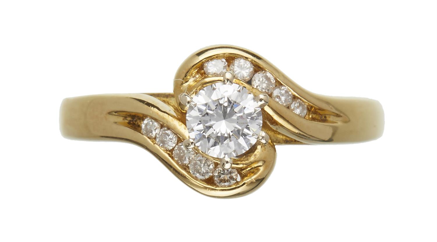 The central brilliant cut diamond weighing 0.31cts, colour H, clarity SI2, shouldered by ten diamonds, in 18ct gold, ring size K.