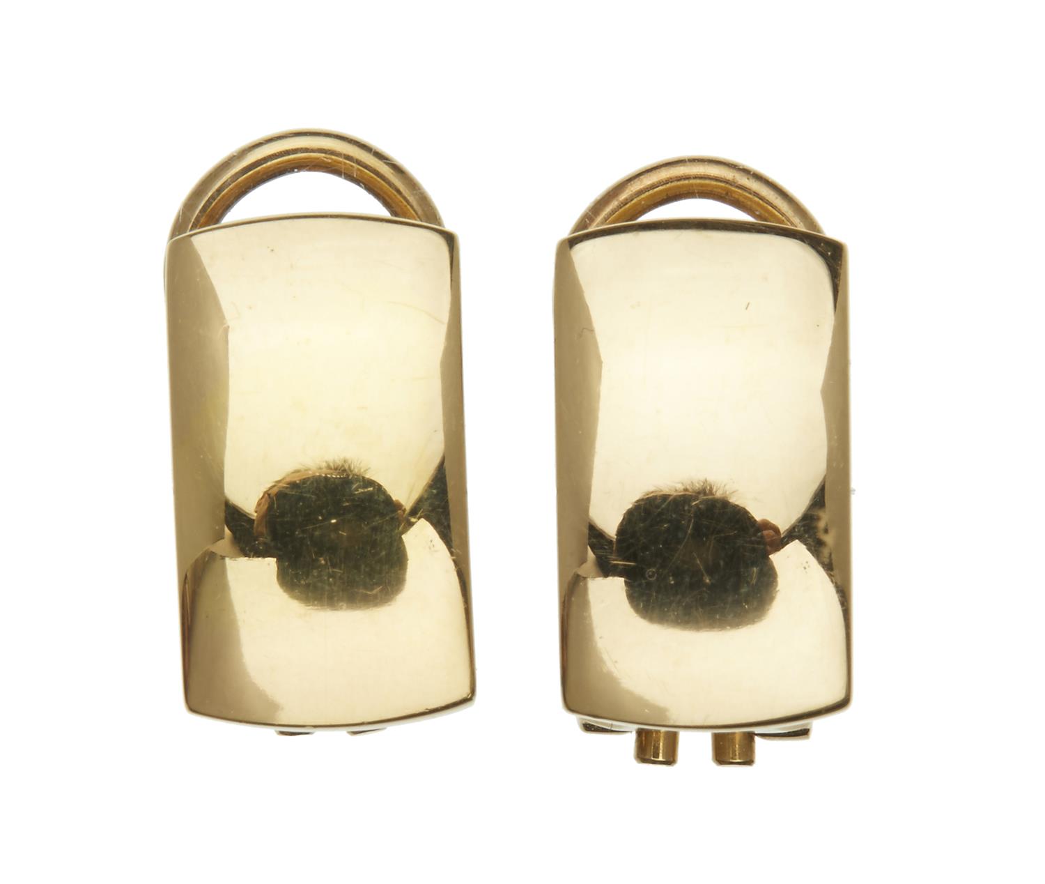 The polished rectangular earrings, to post and clip fittings, in 18ct gold.