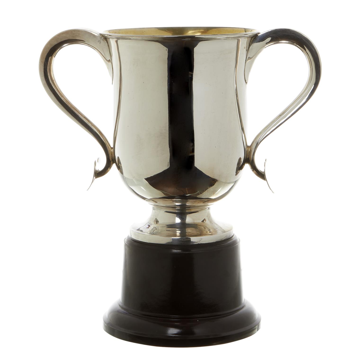 A LARGE STERLING SILVER TWO HANDLED TROPHY