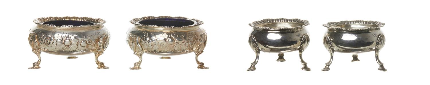 One with bristol blue glass liners hallmarked 1853, maker George John Richards, the other Georgian, marks rubbed.