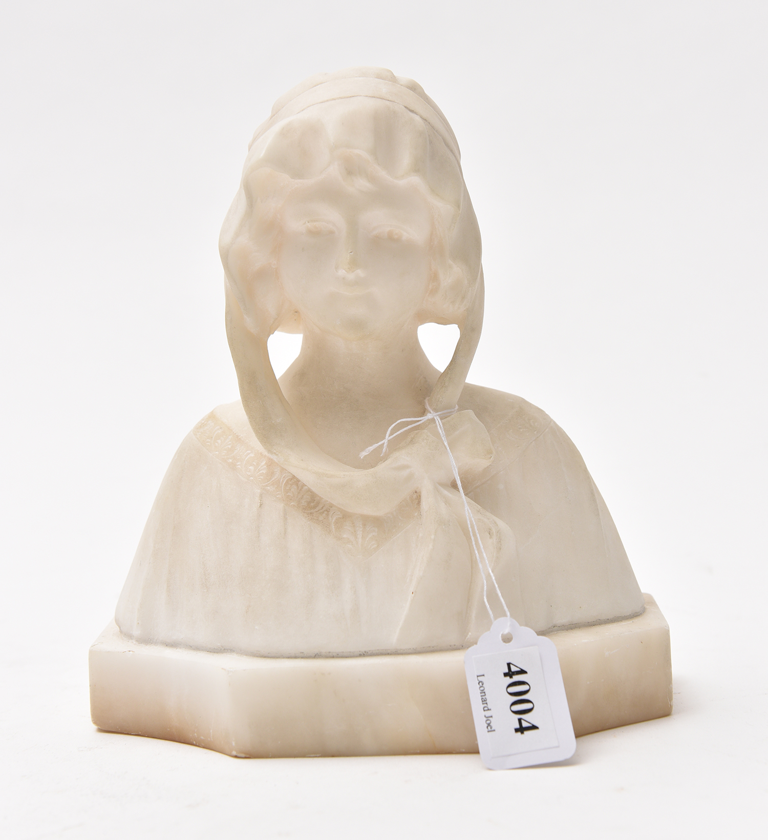 A VICTORIAN ITALIAN ALABASTER BUST OF A YOUNG GIRL