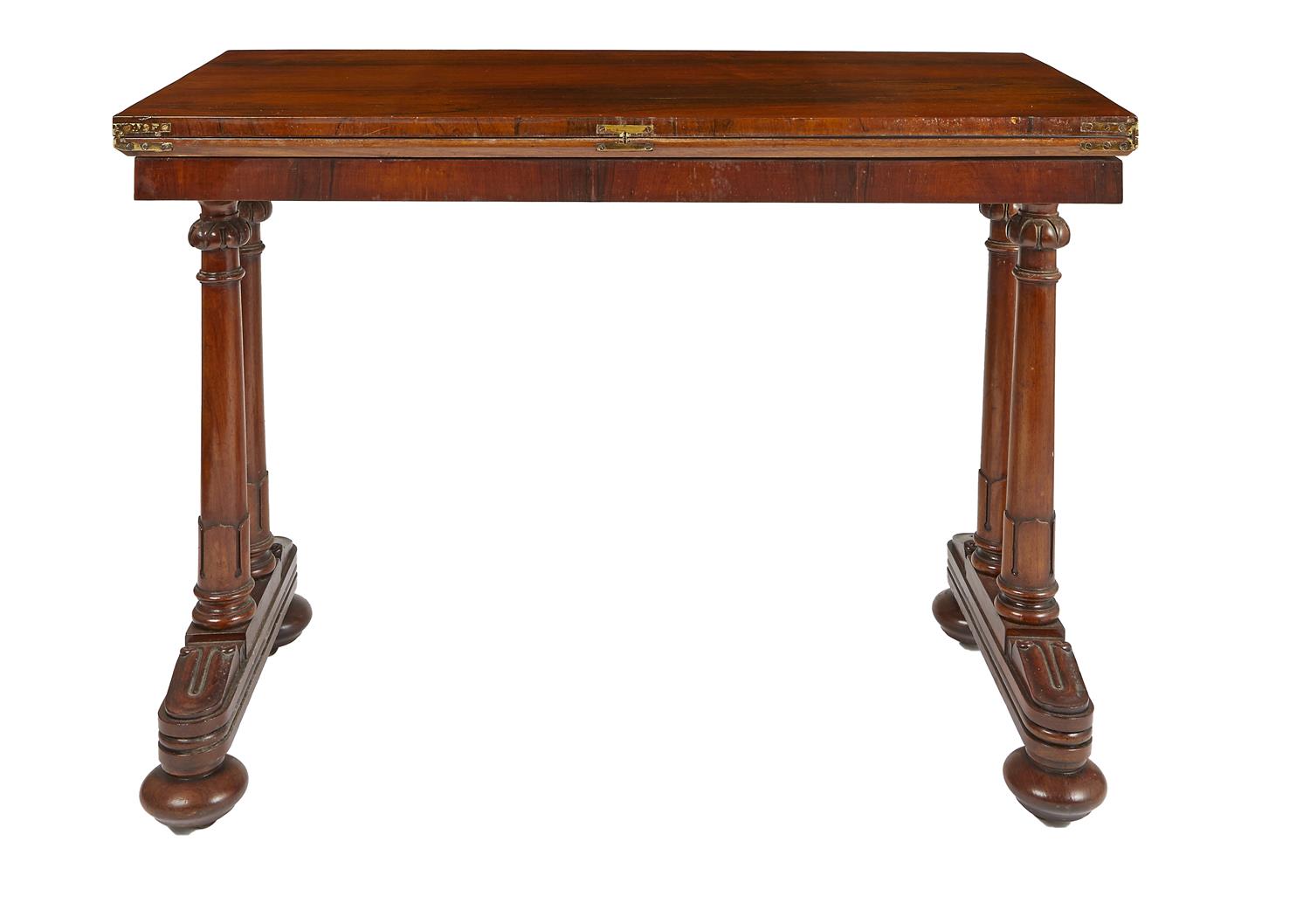 A WILLIAM IV ROSEWOOD FOLDOVER TEA TABLE