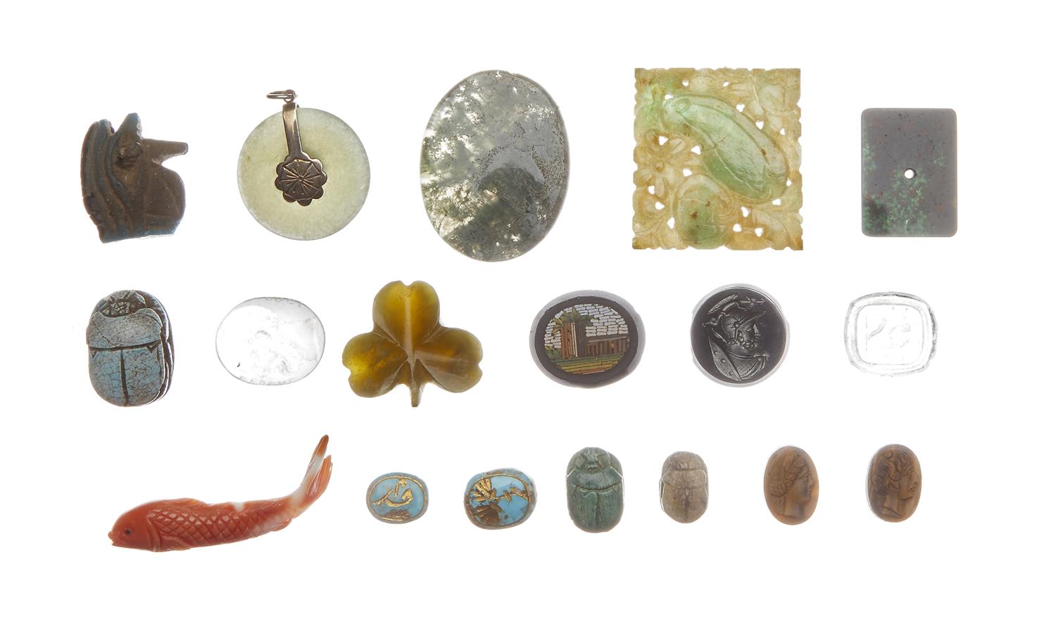 A BAG OF VARIOUS HARDSTONES AND SEALS