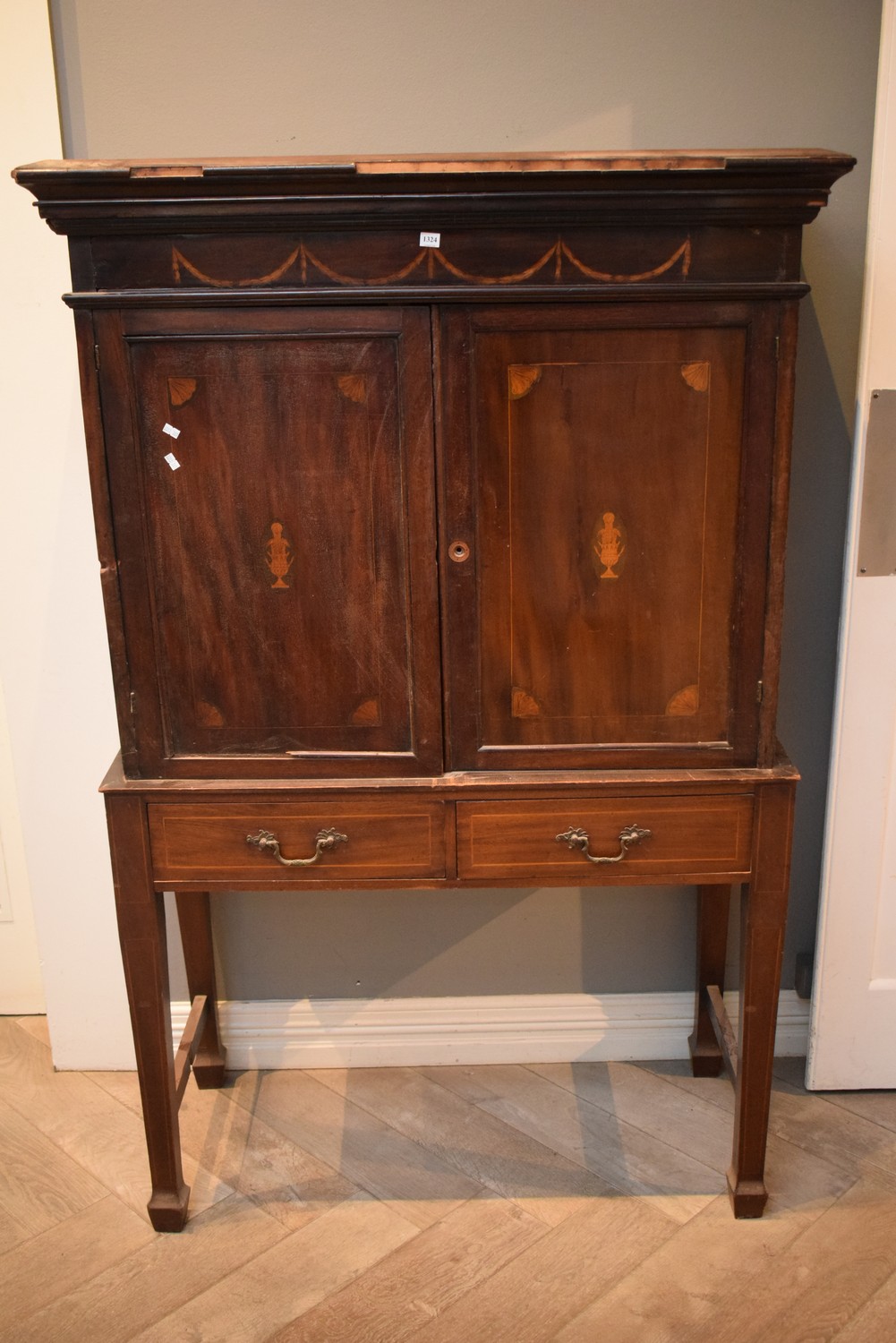 A GEORGIAN CABINET ON STAND (PLEASE NOTE THIS HEAVY ITEM MUST BE REMOVED BY CARRIERS AT THE CUSTOMER'S EXPENSE. LEONARD JOEL STAFF CANNOT ASSIST CARRYING THIS ITEM) (X-LARGE ITEM)