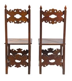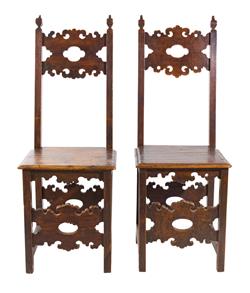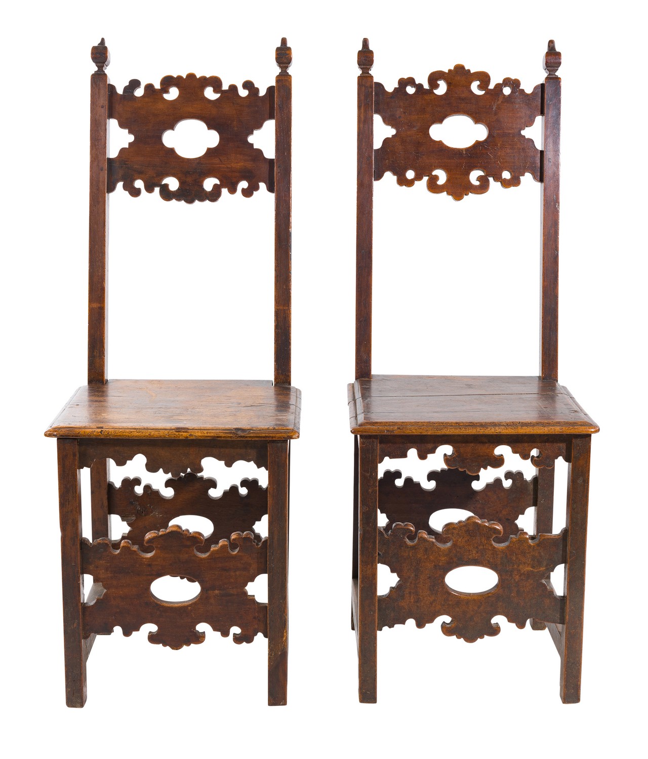 A PAIR OF 17TH CENTURY INSPIRED WALNUT HALL CHAIRS