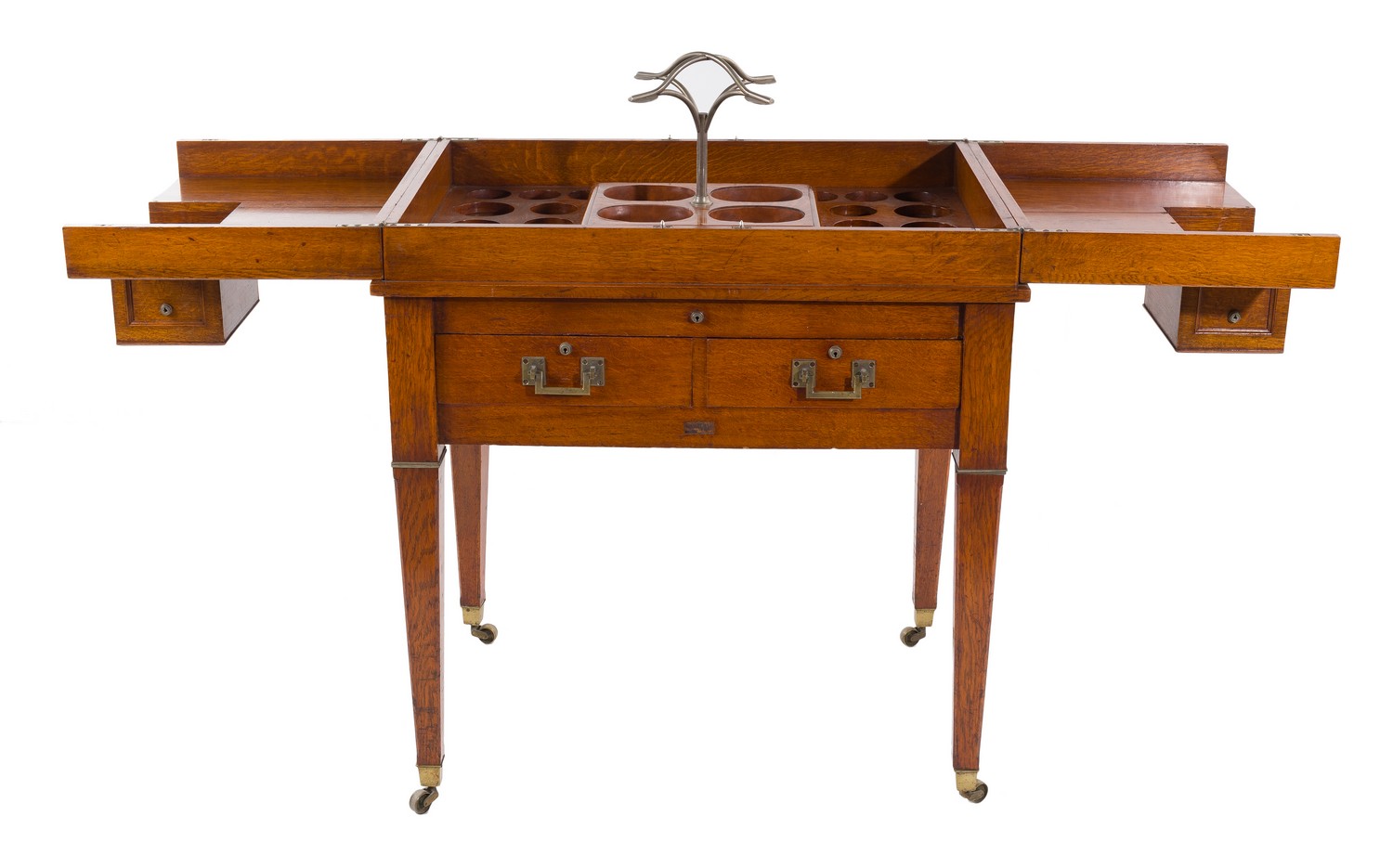 A GENTLEMAN'S OAK TRAVELLING VANITY CHEST
