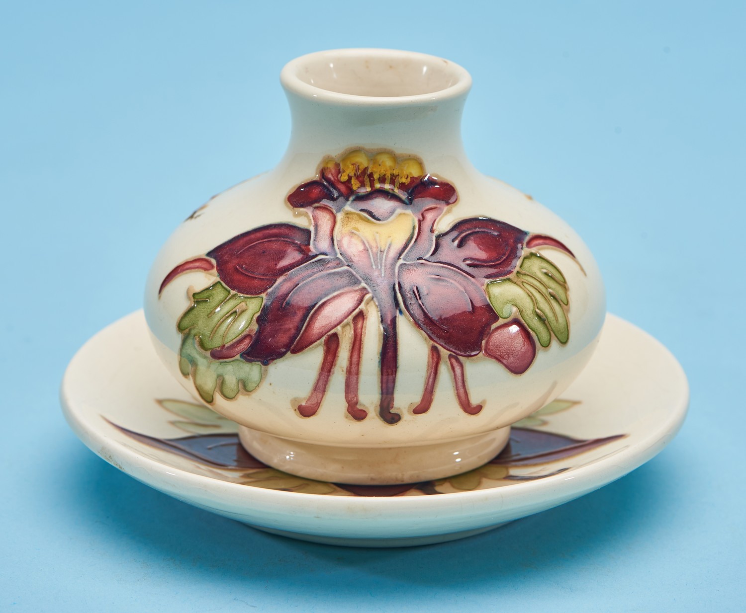 A SMALL MOORCROFT 'ORCHID' VASE & DISH