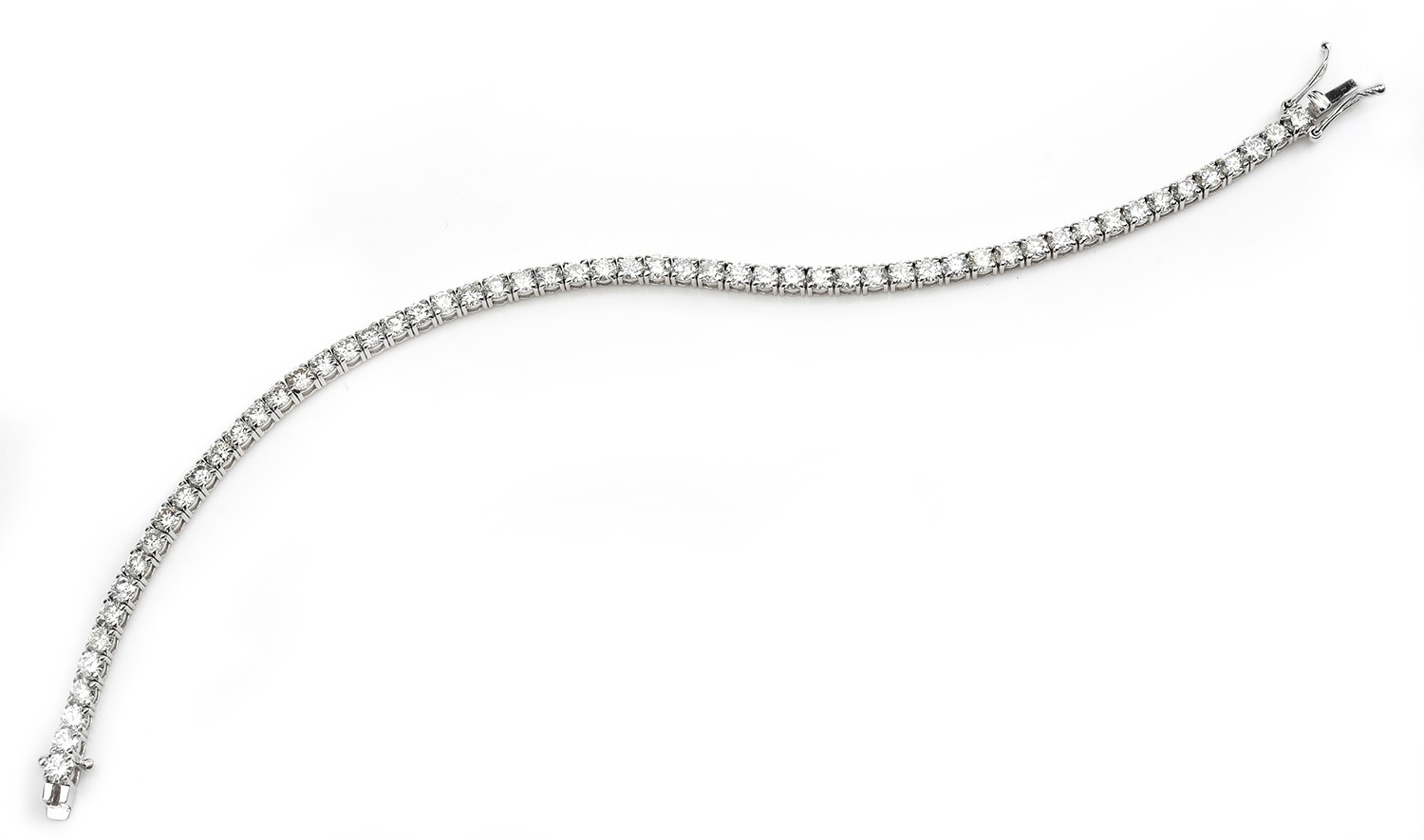 Comprising fifty six round brilliant cut diamonds totalling 6.20cts, in 18ct white gold, total length 180mm.