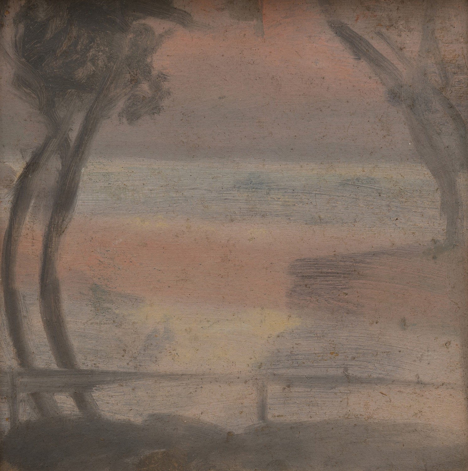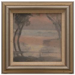 Beckett constantly sought imagery and inspiration from her surroundings; be it through the afterglow of a bright sunset, the shimmering heat of a road or headlights shining through misty Melbourne rain. She fixated and excelled in depicting particular effects of nature, such as sun, haze, rain, mist and smoke, flawlessly capturing nature's shades of lavender, lilac and tonal greys.