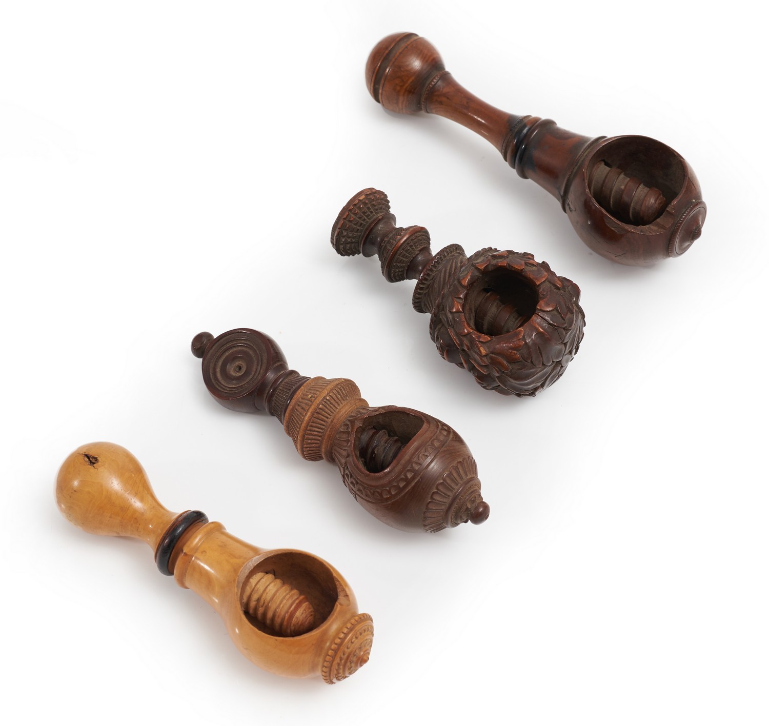 FOUR FRENCH TREEN POCKET NUTCRACKERS